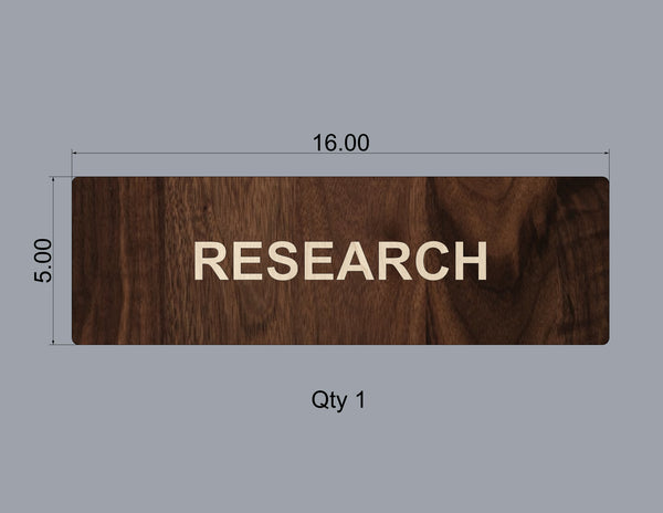 Custom Order 047 - CareDesk (Aprille V.) - Research Sign - 1 Qty. - 16'' x 5'' - Dark Walnut + Maple Veneer - Client #190014