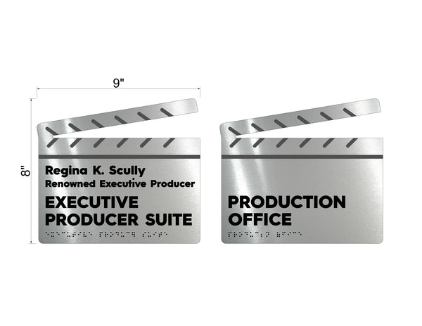 - 9"x8" Custom Clapper Silver ACM Signs: $108 ea. (x2)